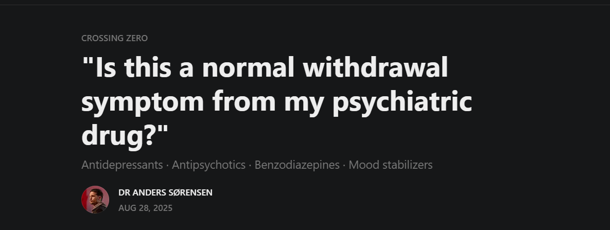That’s one of the most common questions I get in my inbox and in my clinic. It’s also one of the most common questions on online withdrawal forums. People taper their medication, a wave of strange and frightening symptoms appears, and they’re left wondering: